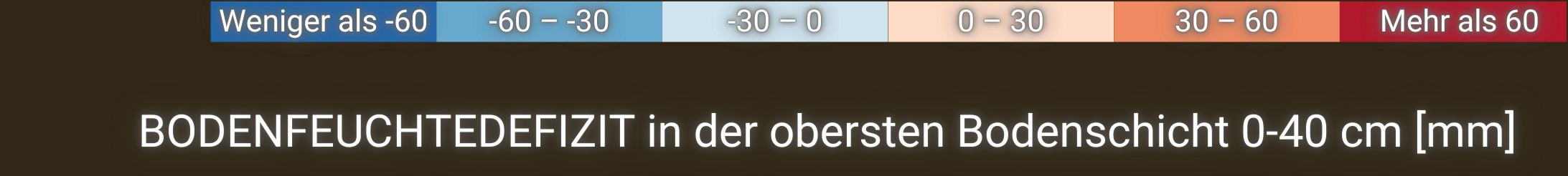 Aus den Bodenfeuchteanomalien der verschiedenen Schichten (basierend auf dem SoilClim-Wasserhaushaltsmodell) ergibt sich die Abweichung des Bodenfeuchtegehalts vom langfristigen Median des Referenzzeitraums 1961-2010.
