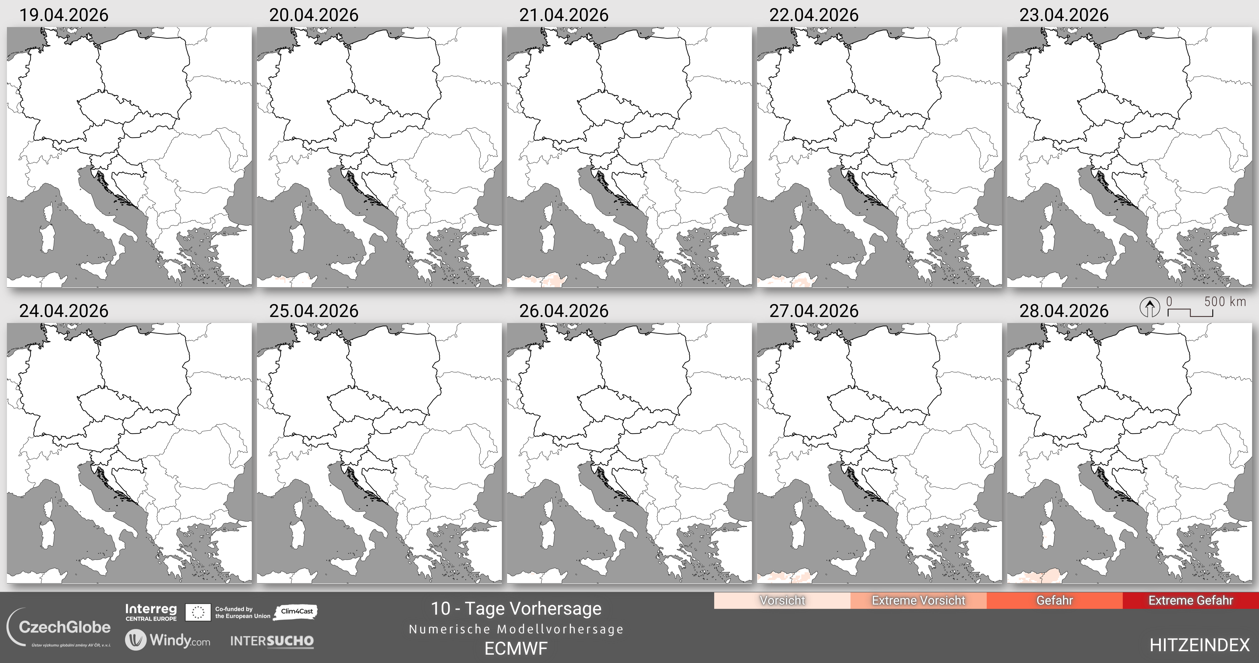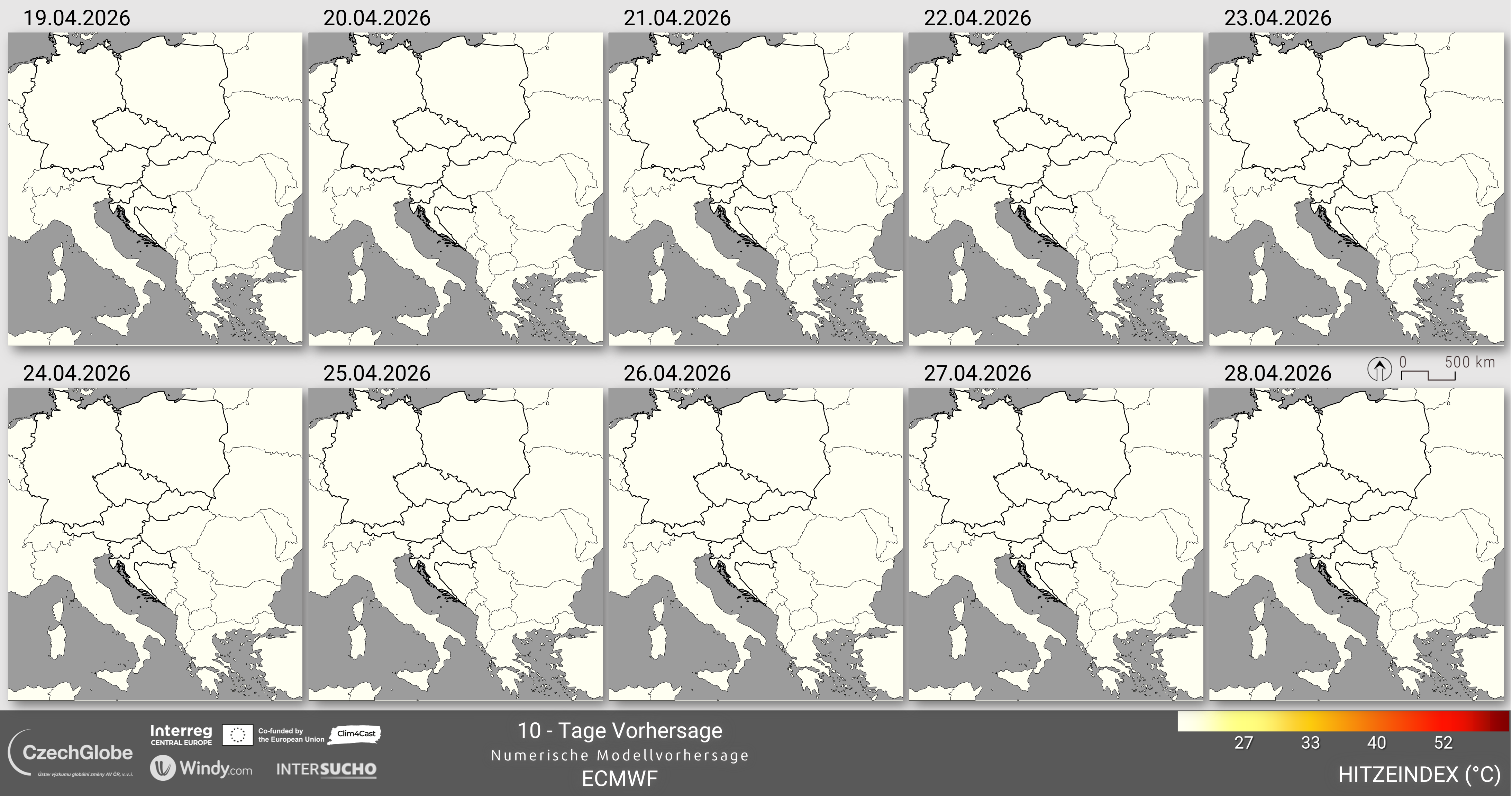 Dies ist entscheidend für das Verständnis des Komfortniveaus des menschlichen Körpers. Wenn der Körper überhitzt ist, schwitzt er, um sich abzukühlen. Wenn der Schweiß jedoch nicht verdunsten kann, hat der Körper Schwierigkeiten, seine Temperatur zu regulieren. Verdunstung ist ein kühlender Prozess, und wenn Schweiß verdunstet, trägt er zur Senkung der Körpertemperatur bei. Eine hohe relative Luftfeuchtigkeit verlangsamt diese Verdunstung, wodurch sich der Körper wärmer anfühlt. Umgekehrt beschleunigt eine niedrige Luftfeuchtigkeit die Verdunstung, so dass sich der Körper kühler anfühlt. Es besteht ein direkter Zusammenhang zwischen der Lufttemperatur, der relativen Luftfeuchtigkeit und dem Hitzeindex: Wenn Lufttemperatur und relative Luftfeuchtigkeit steigen, steigt auch der Hitzeindex und umgekehrt. Ein Hitzeindex von über 39 °C oder höher kann bei längerer Exposition und/oder körperlicher Aktivität in der Hitze zu gefährlichen Hitzeerkrankungen wie Hitzekrämpfen oder Hitzschlag führen. Die Temperatur und die relative Luftfeuchtigkeit werden aus dem IFS-Wettervorhersagemodell des ECMWF abgeleitet.