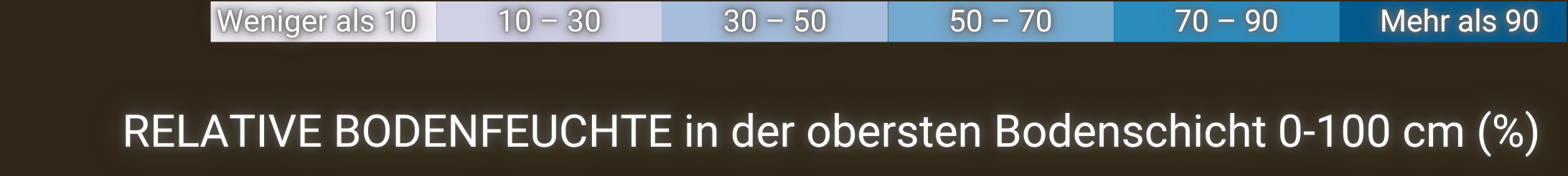 Die Bodenfeuchte stellt den tatsächlichen modellierten Bodenfeuchtegehalt dar (basierend auf dem SoilClIm-Wasserhaushaltsmodell), ausgedrückt als Prozentsatz des pflanzenverfügbaren Wassers, d. h. des Wasservolumens zwischen der Feldkapazität und dem Welkepunkt.
