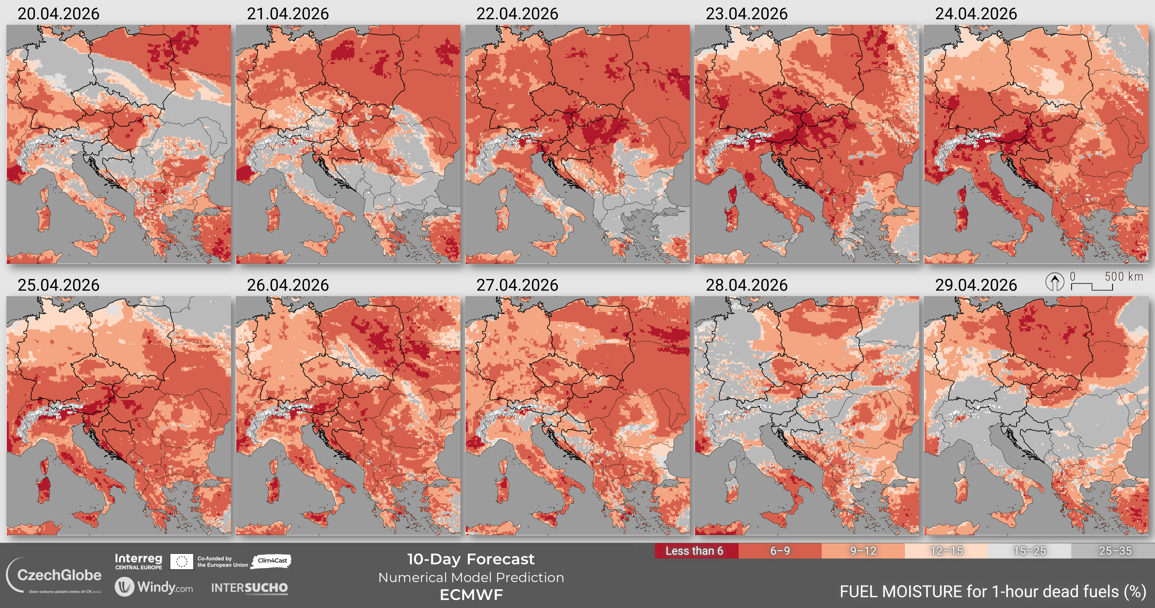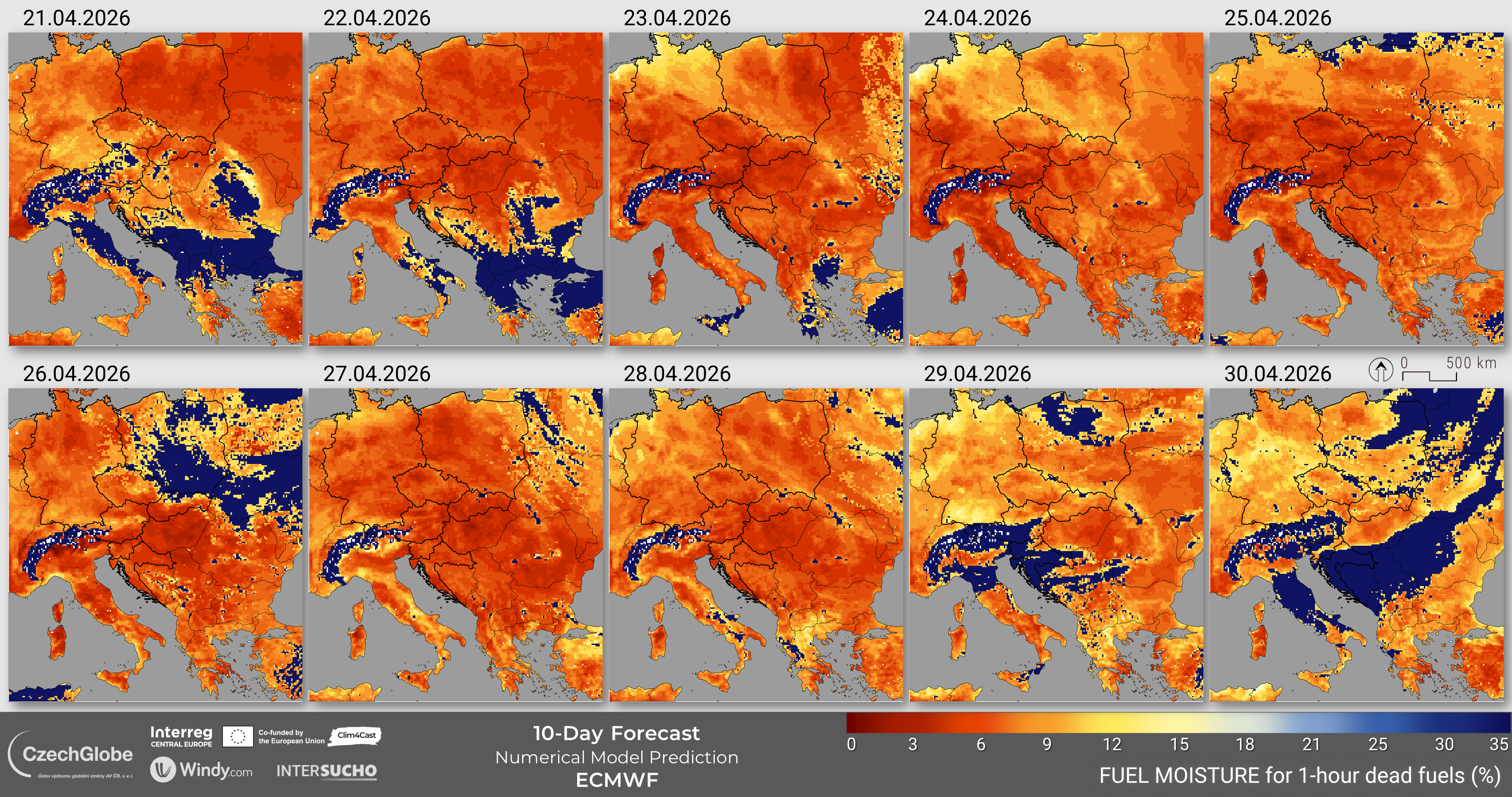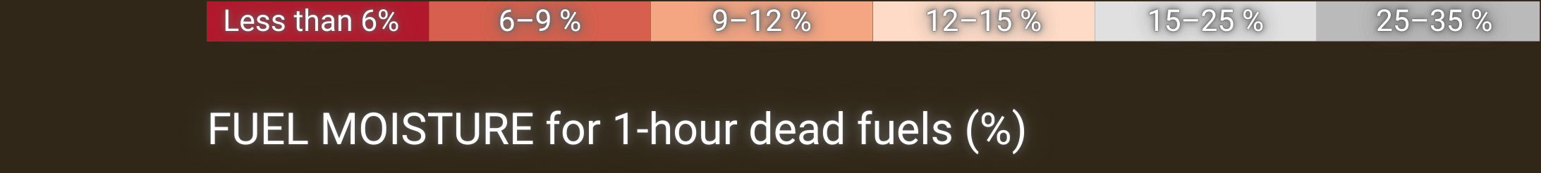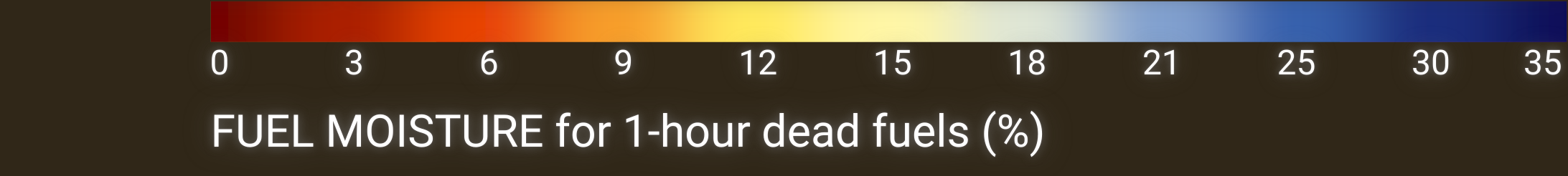 Fuel moisture represents the dead fuel moisture content of 10-hour fuel and is calculated based on temperature, relative air humidity, cloud cover, snow cover, and precipitation.