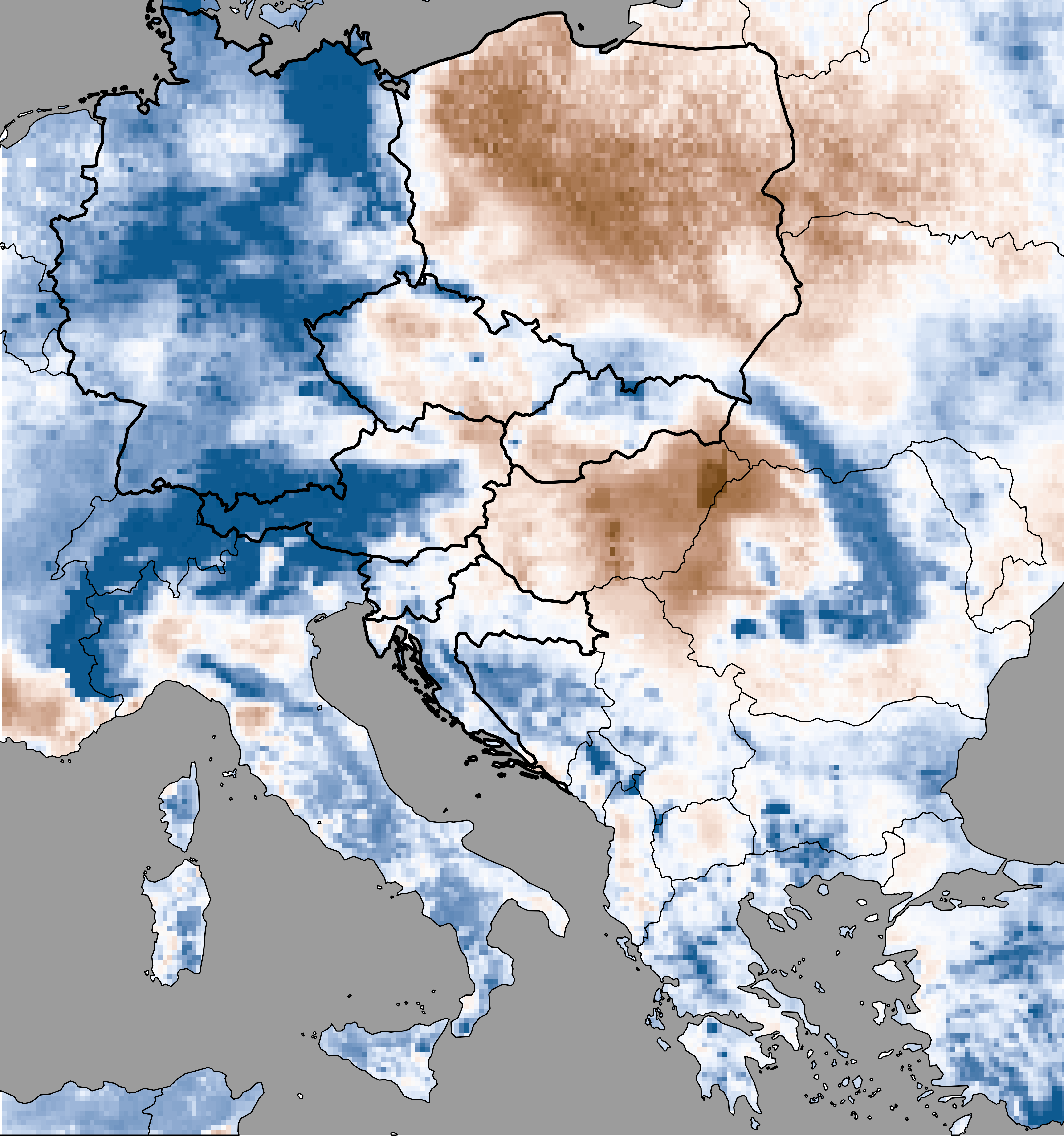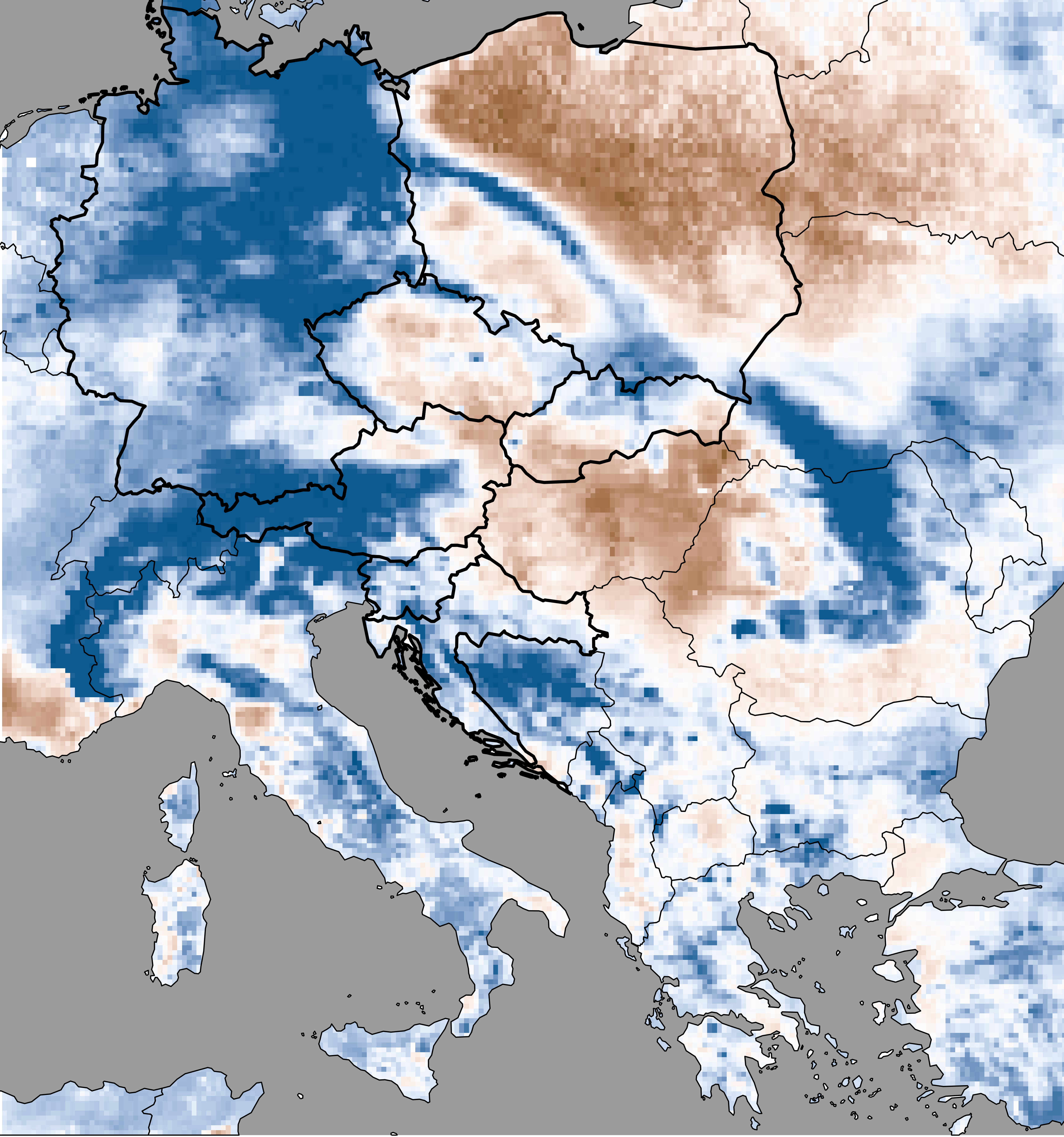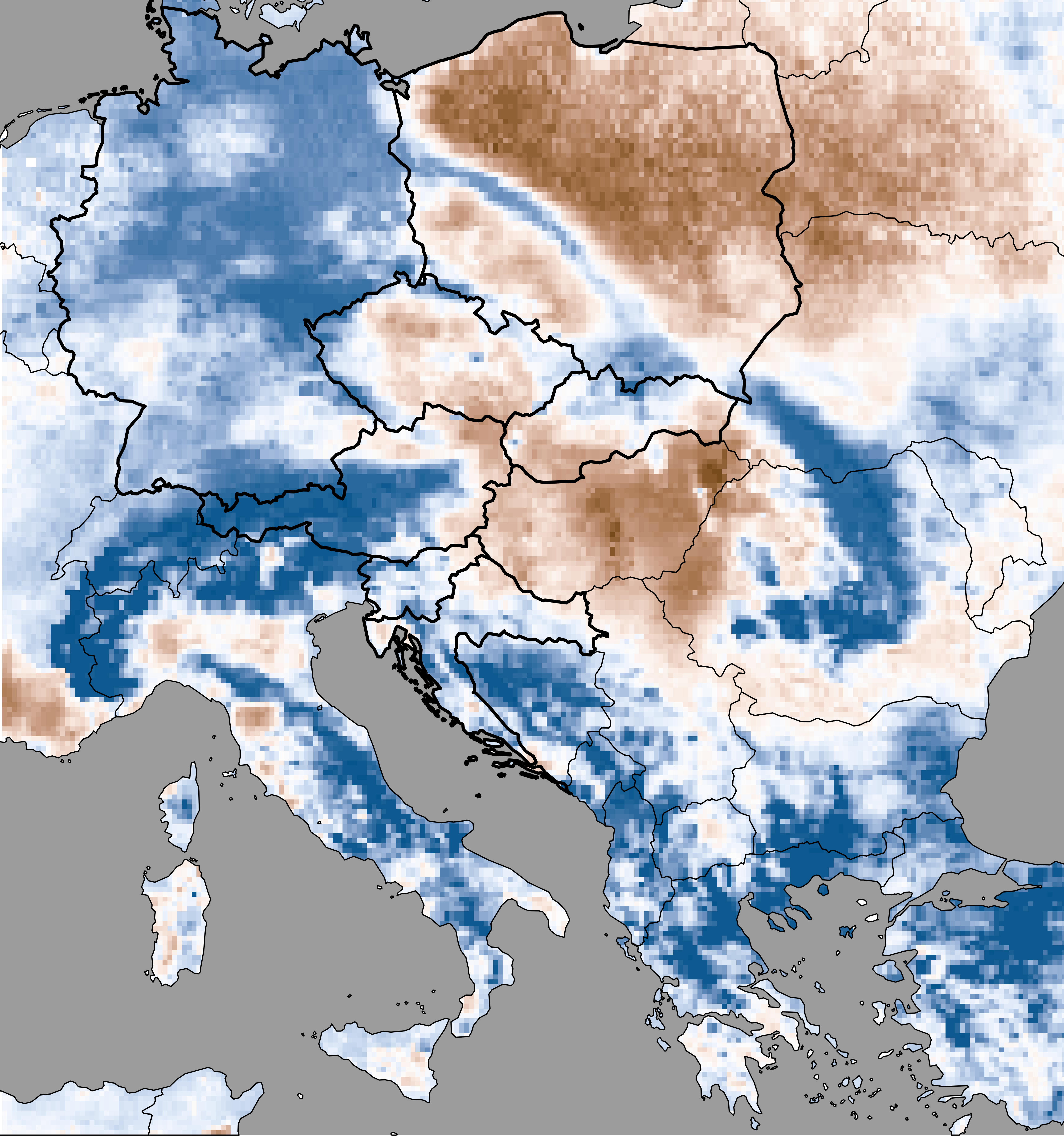 Soil moisture represents the actual modeled soil moisture content (based on SoilClim water balance model) expressed as the percentage of the plant available water, i.e. the volume of water between the field capacity and the wilting point.