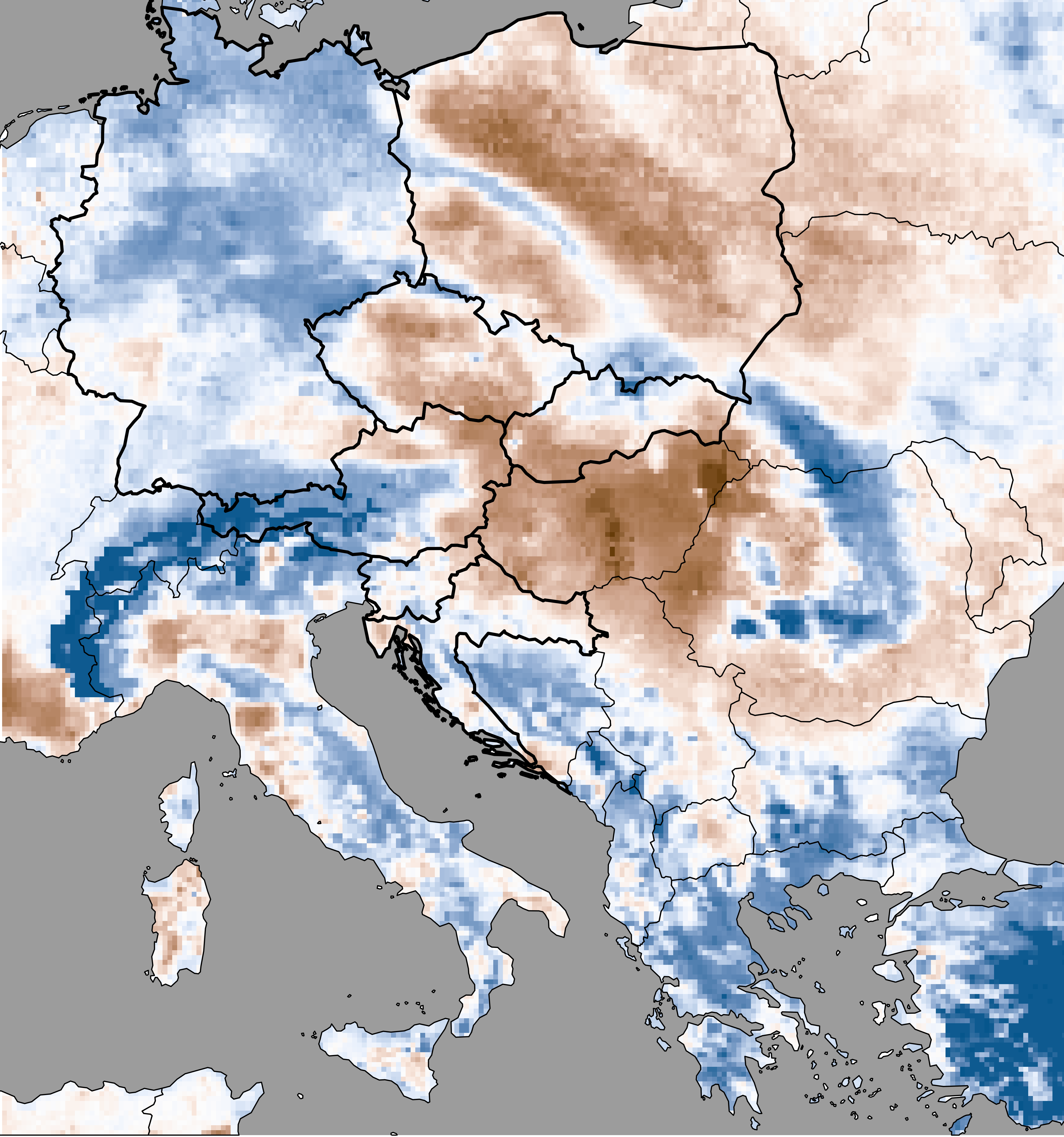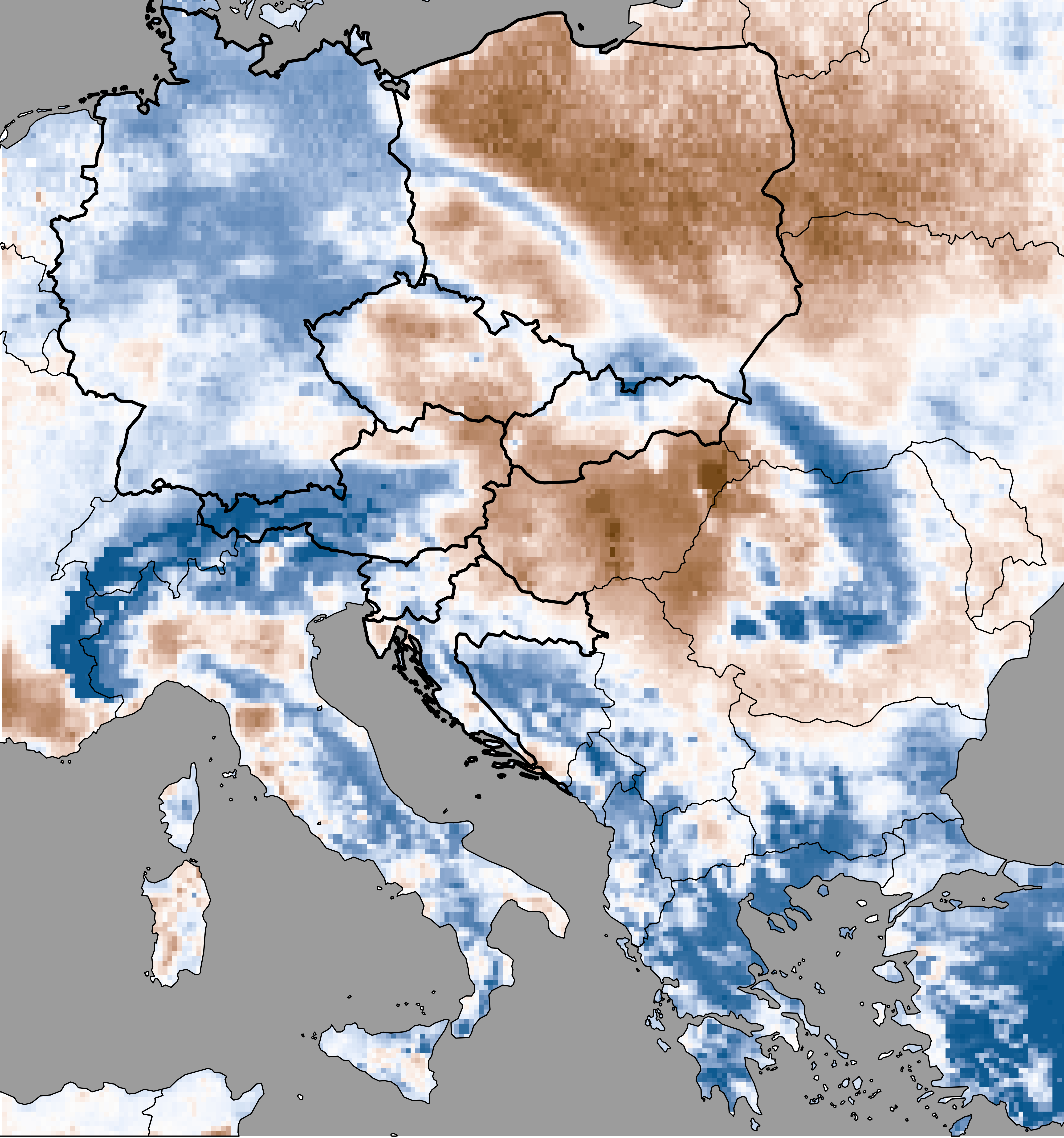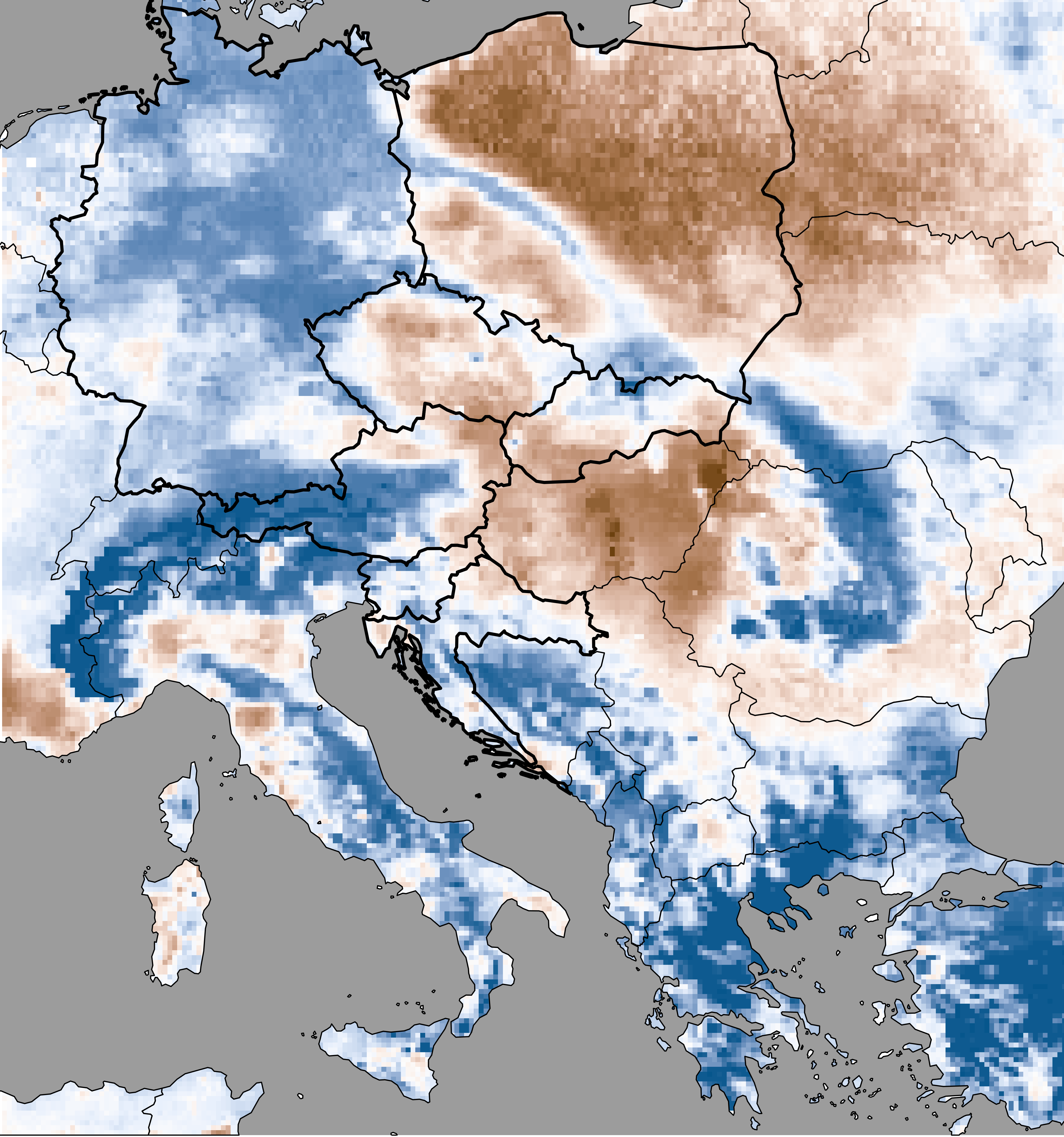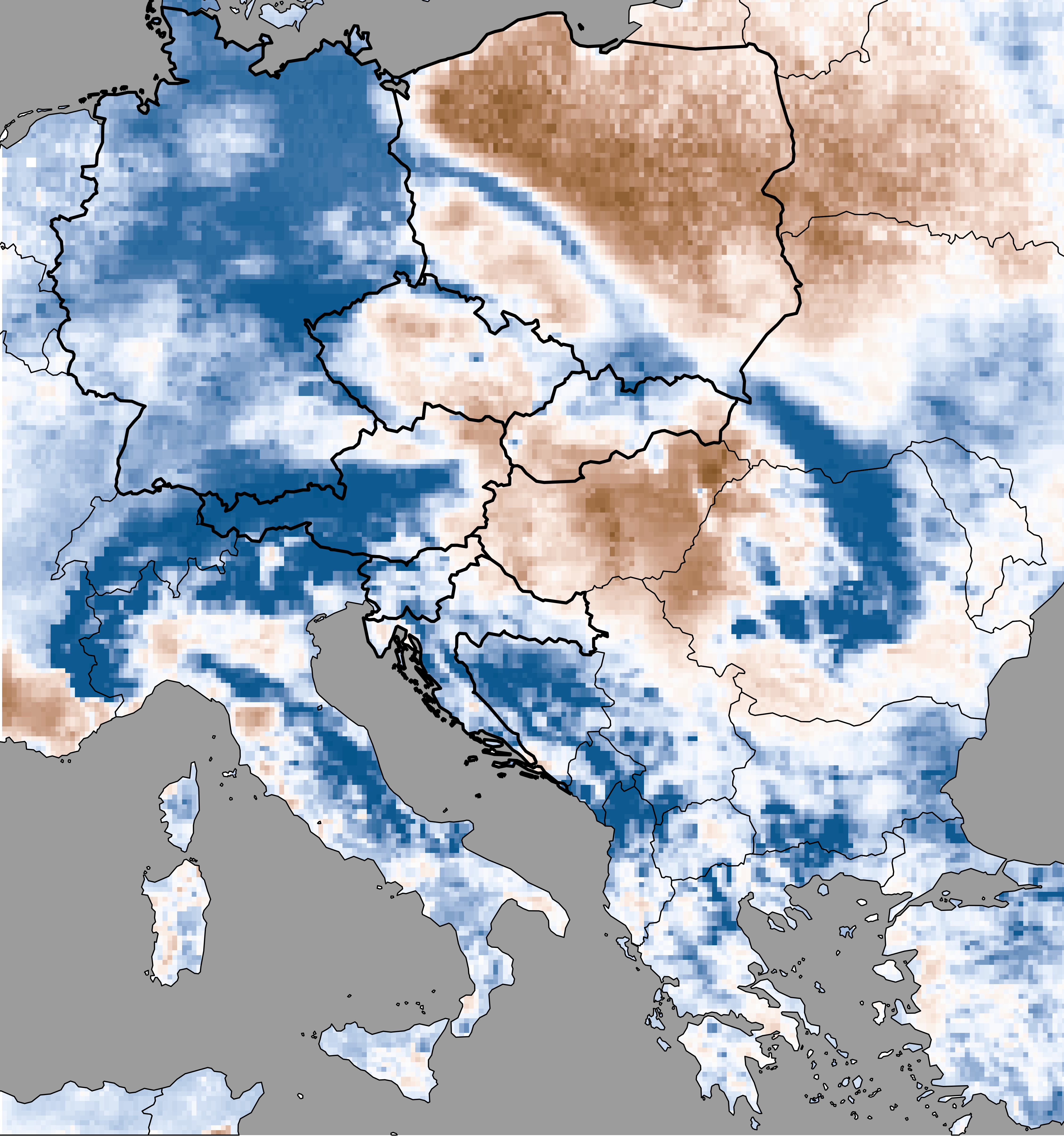 Soil moisture represents the actual modeled soil moisture content (based on SoilClim water balance model) expressed as the percentage of the plant available water, i.e. the volume of water between the field capacity and the wilting point.