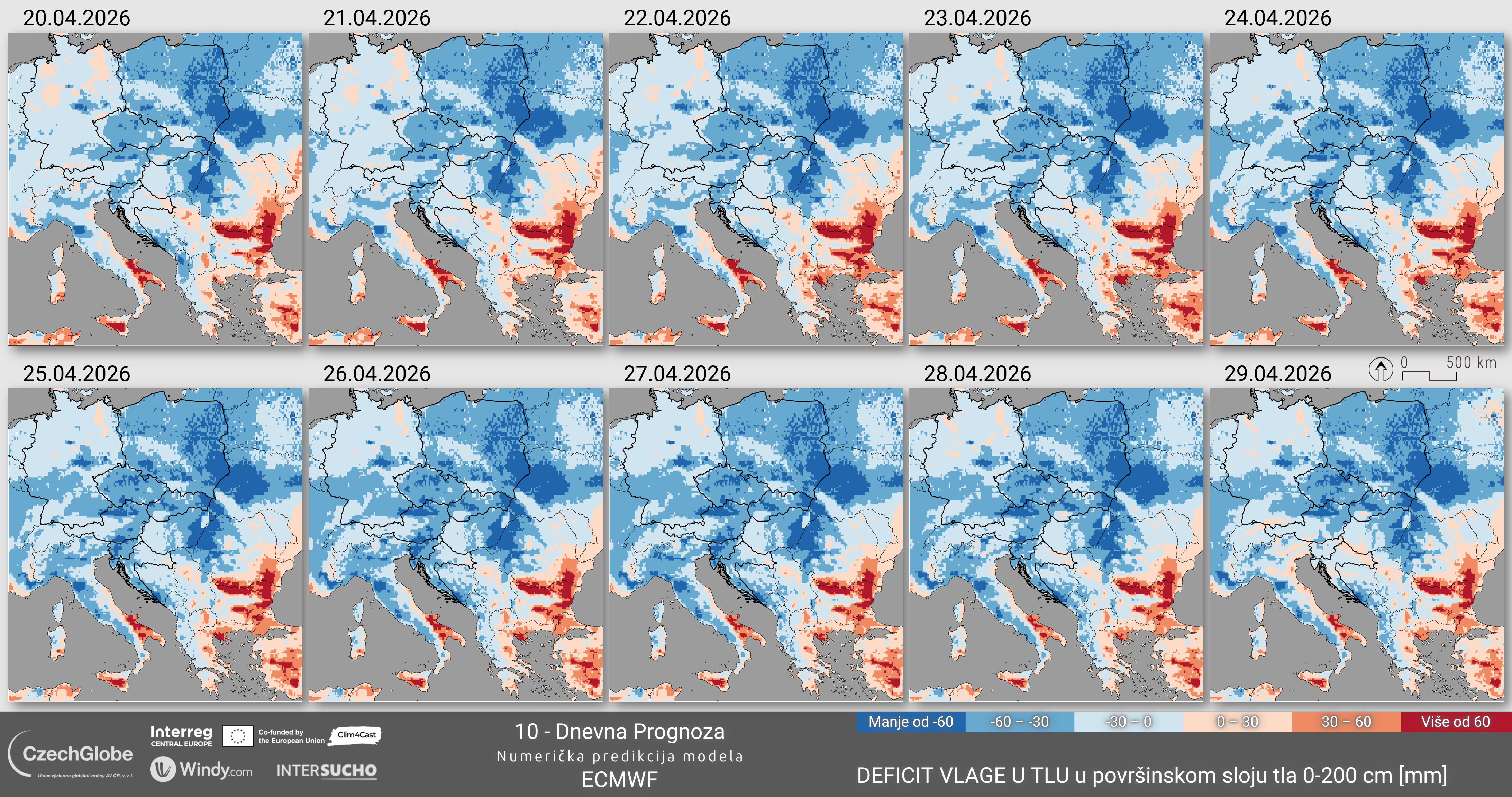 Sloj anomalija vlage u tlu (koji se temelji na modelu vodne ravnoteže SoilClim) predstavlja odstupanje sadržaja vlage u tlu od dugoročnog medijana referentnog razdoblja 1961. – 2010.