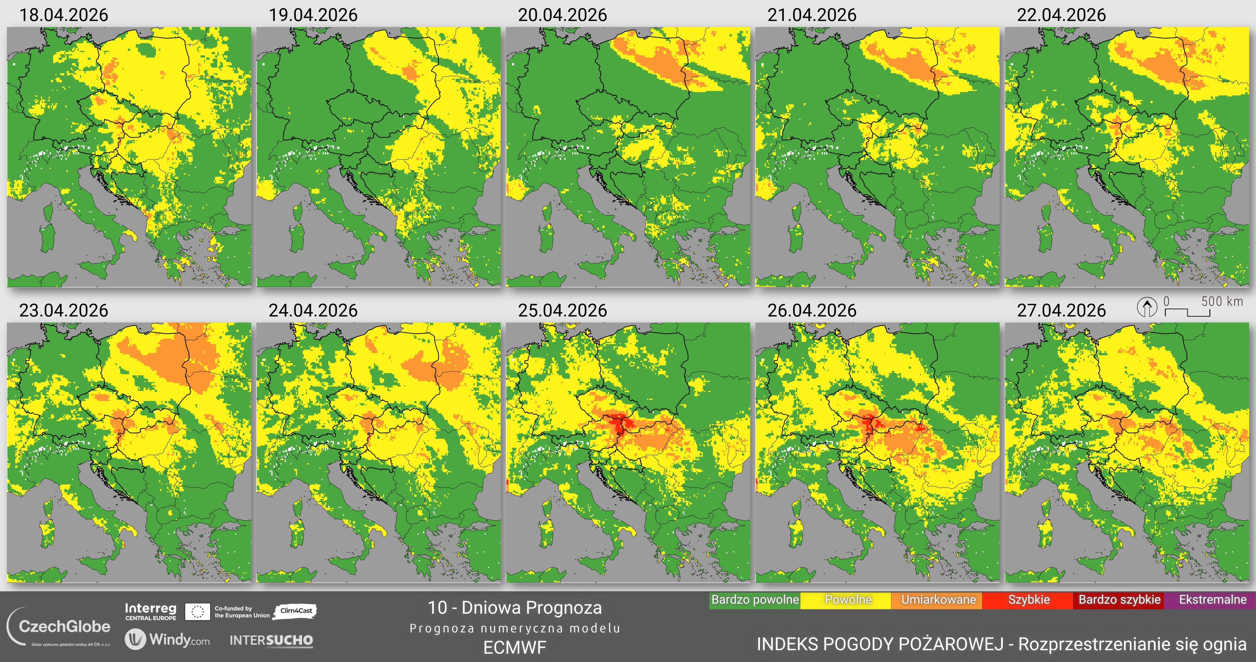 Rozprzestrzenianie się ognia określa, czy warunki sprzyjają występowaniu i rozprzestrzenianiu się pożarów.