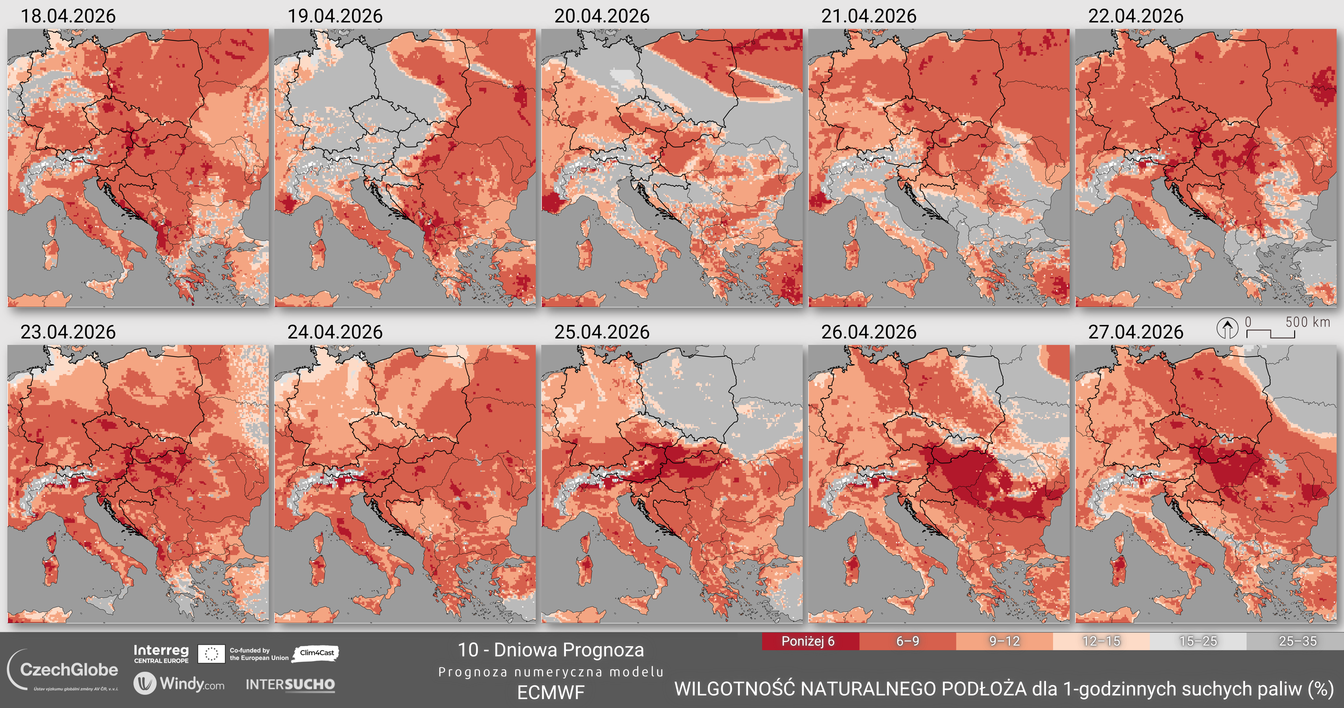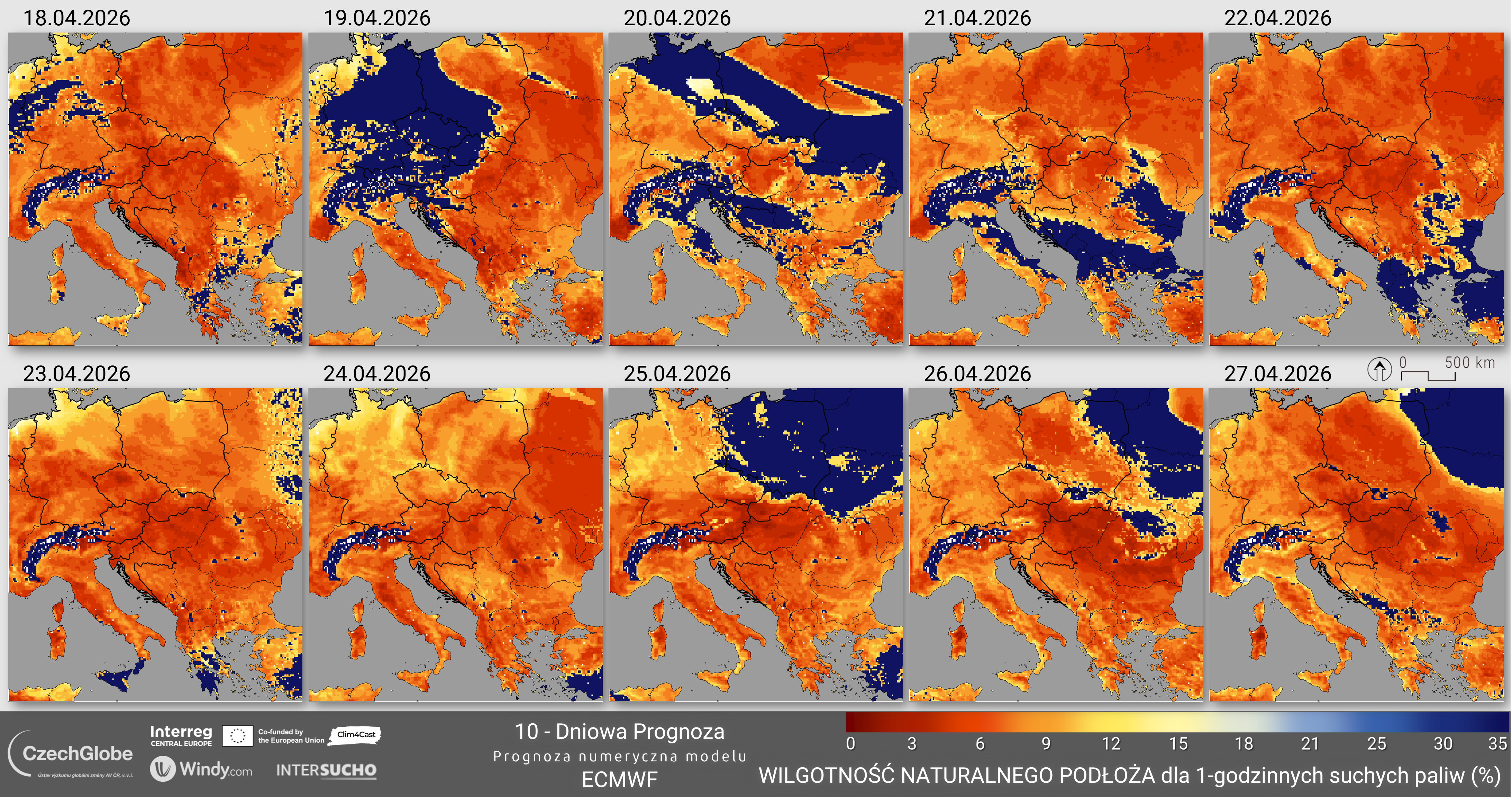 Wilgotność paliwa reprezentuje wilgotność martwego paliwa 10-godzinnego i jest obliczana na podstawie temperatury, wilgotności względnej powietrza, pokrywy chmur, pokrywy śnieżnej oraz opadów.