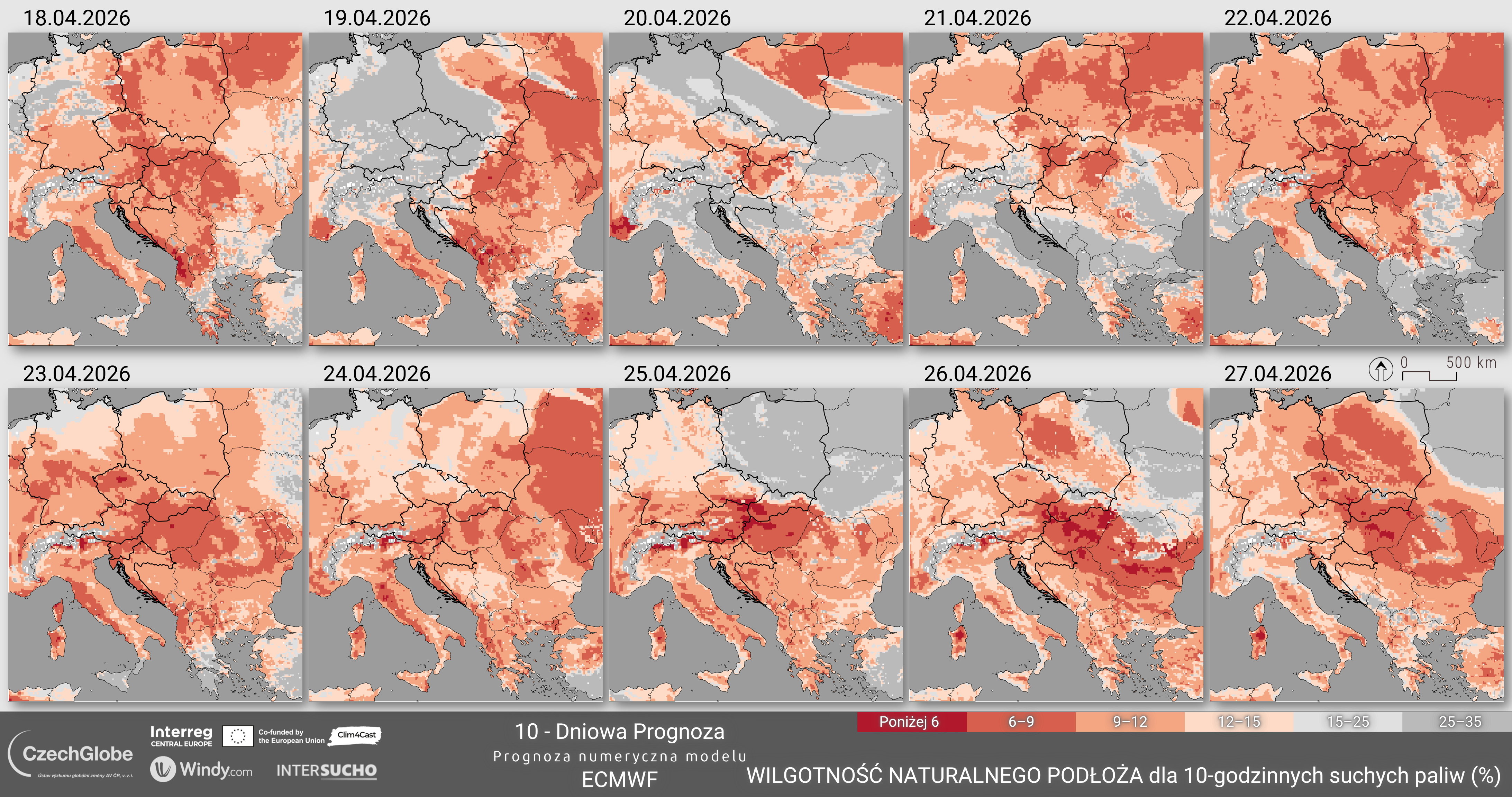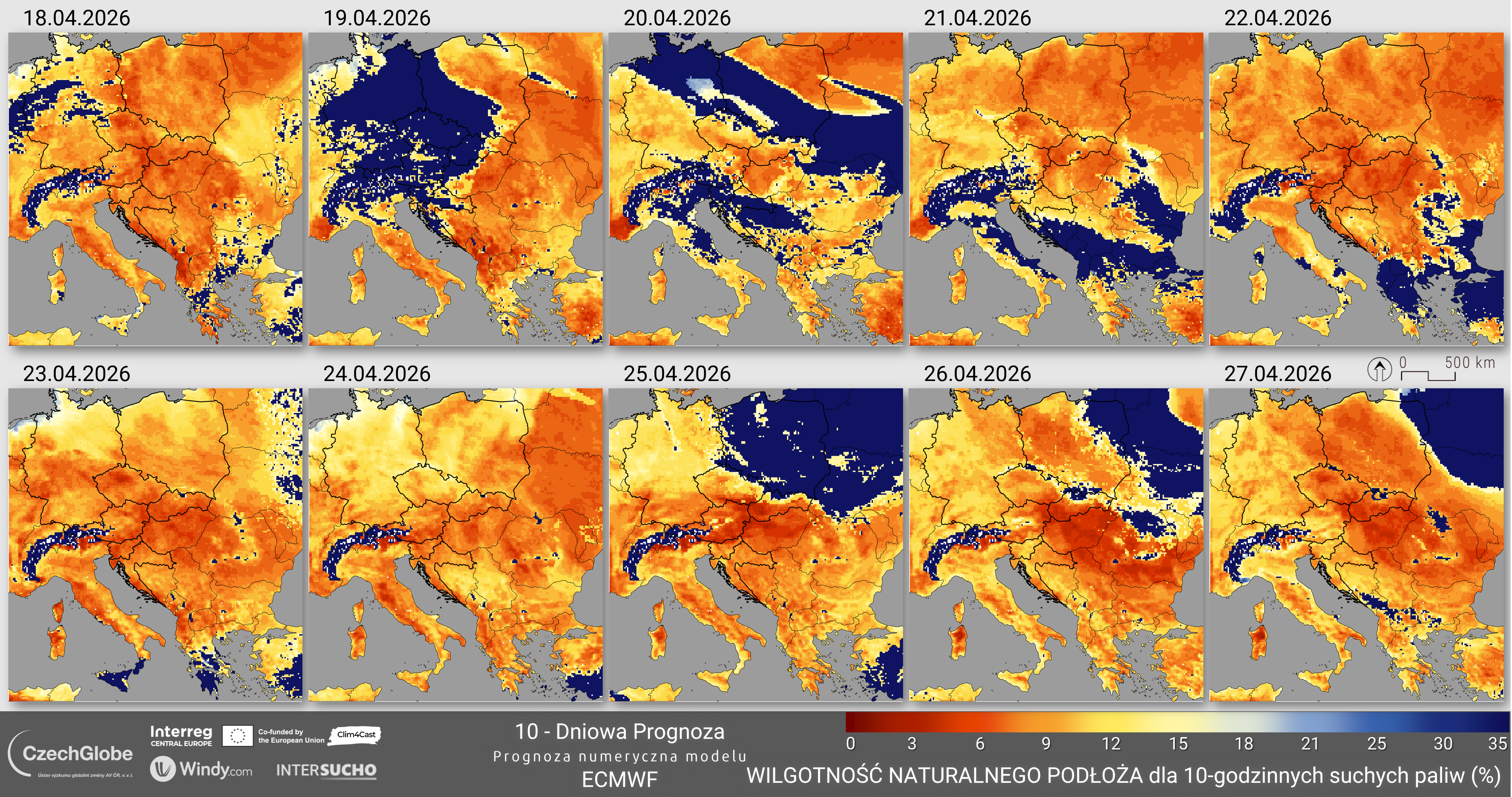 Wilgotność paliwa reprezentuje wilgotność martwego paliwa 10-godzinnego i jest obliczana na podstawie temperatury, wilgotności względnej powietrza, pokrywy chmur, pokrywy śnieżnej oraz opadów.