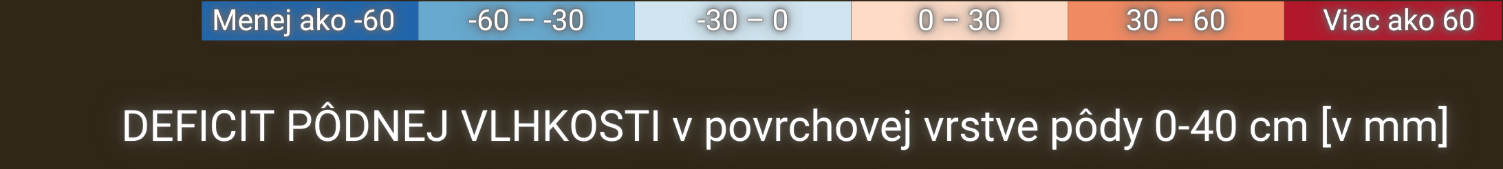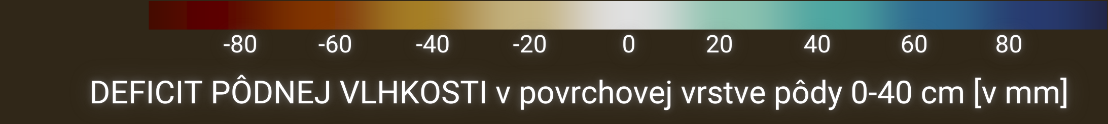 Vrstva anomálií pôdnej vlhkosti (na základe modelu vodnej bilancie SoilClim) predstavuje odchýlku pôdnej vlhkosti od dlhodobého mediánu referenčného obdobia 1961–2010.