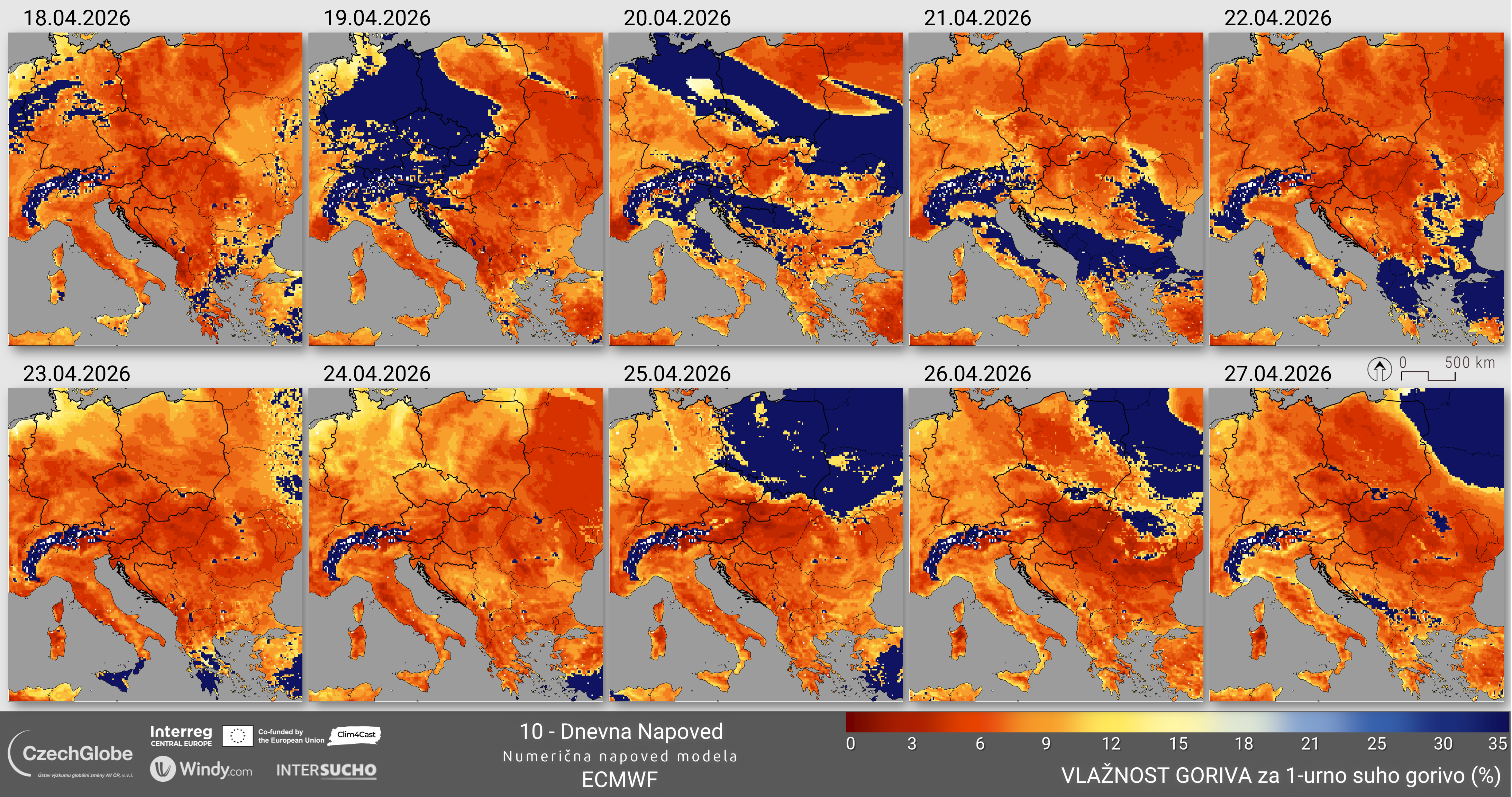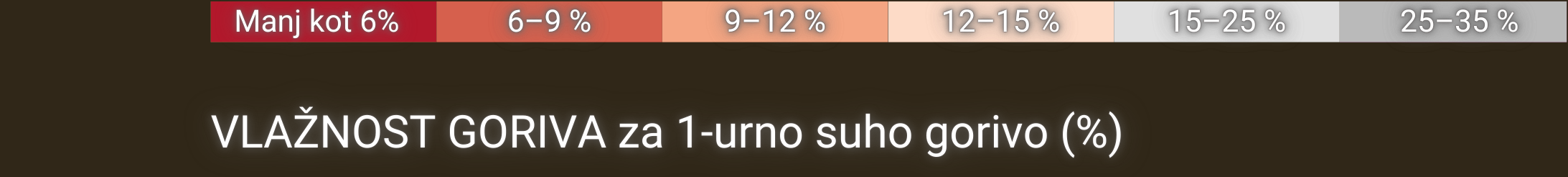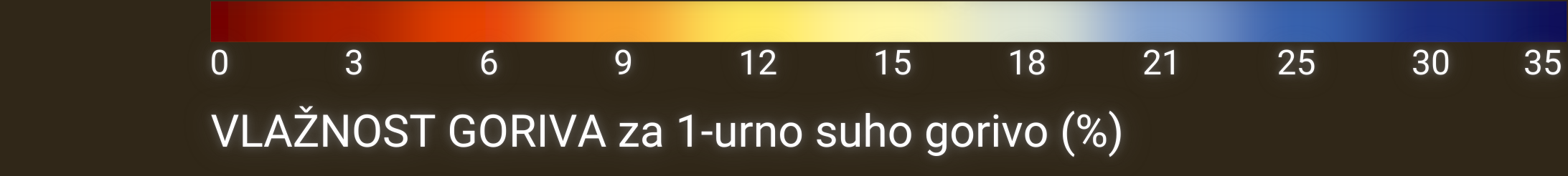 Vlažnost goriva predstavlja vsebnost vlage v mrtvem gorivu v 10-urnem obdobju in se izračuna na podlagi temperature, relativne vlažnosti zraka, oblačnosti, snežne odeje in padavin.