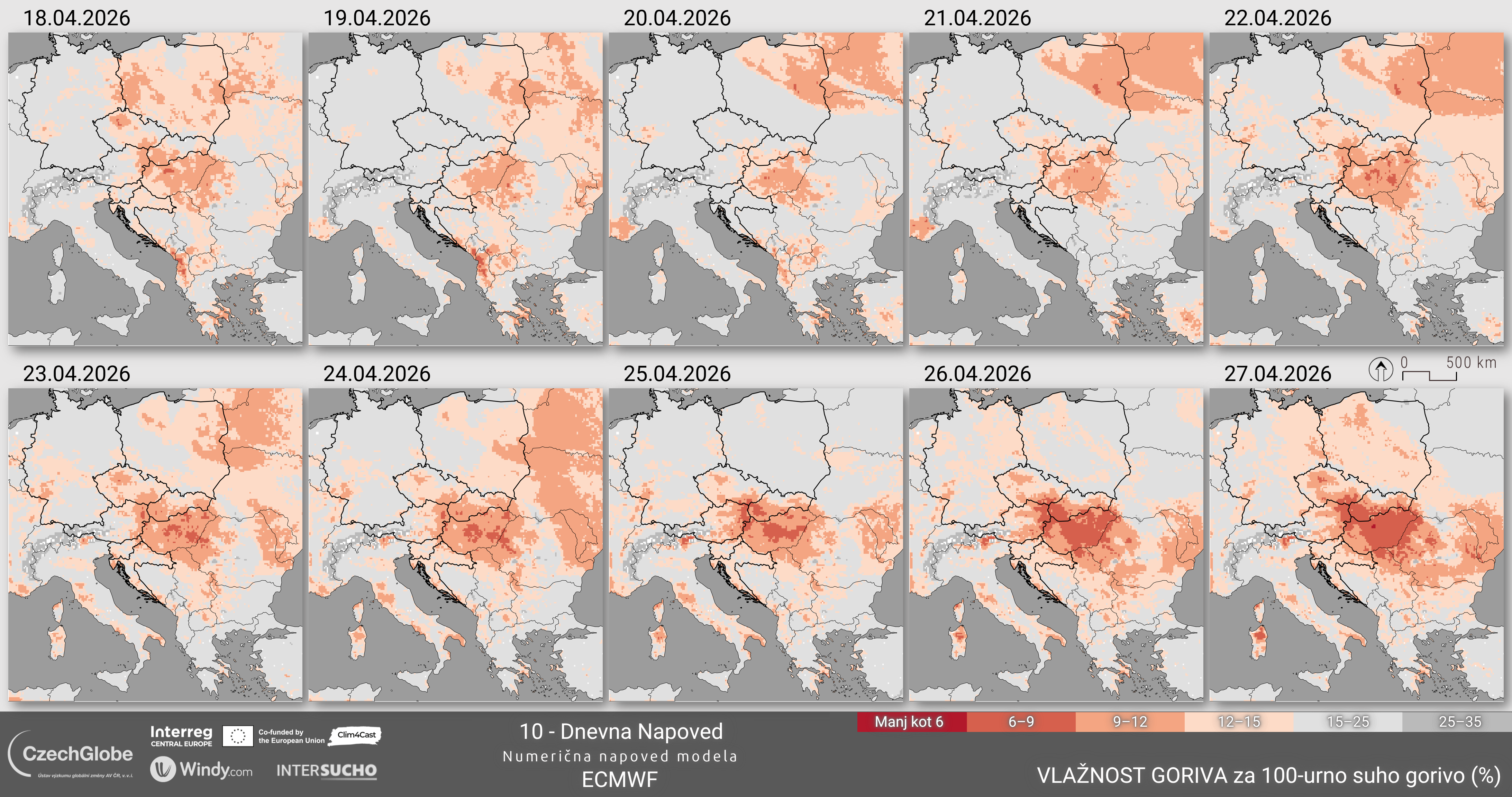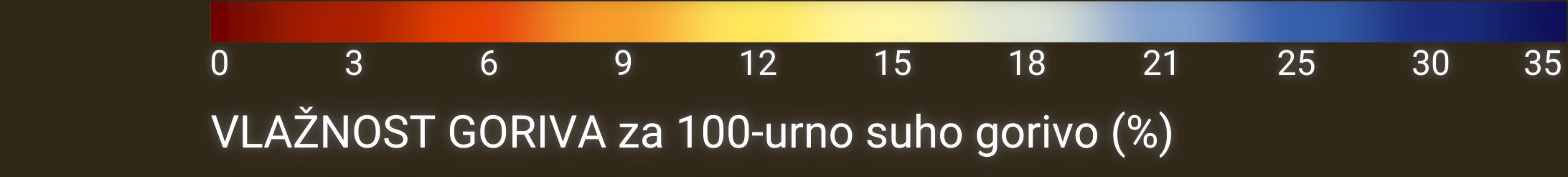 Vlažnost goriva predstavlja vsebnost vlage v mrtvem gorivu v 10-urnem obdobju in se izračuna na podlagi temperature, relativne vlažnosti zraka, oblačnosti, snežne odeje in padavin.